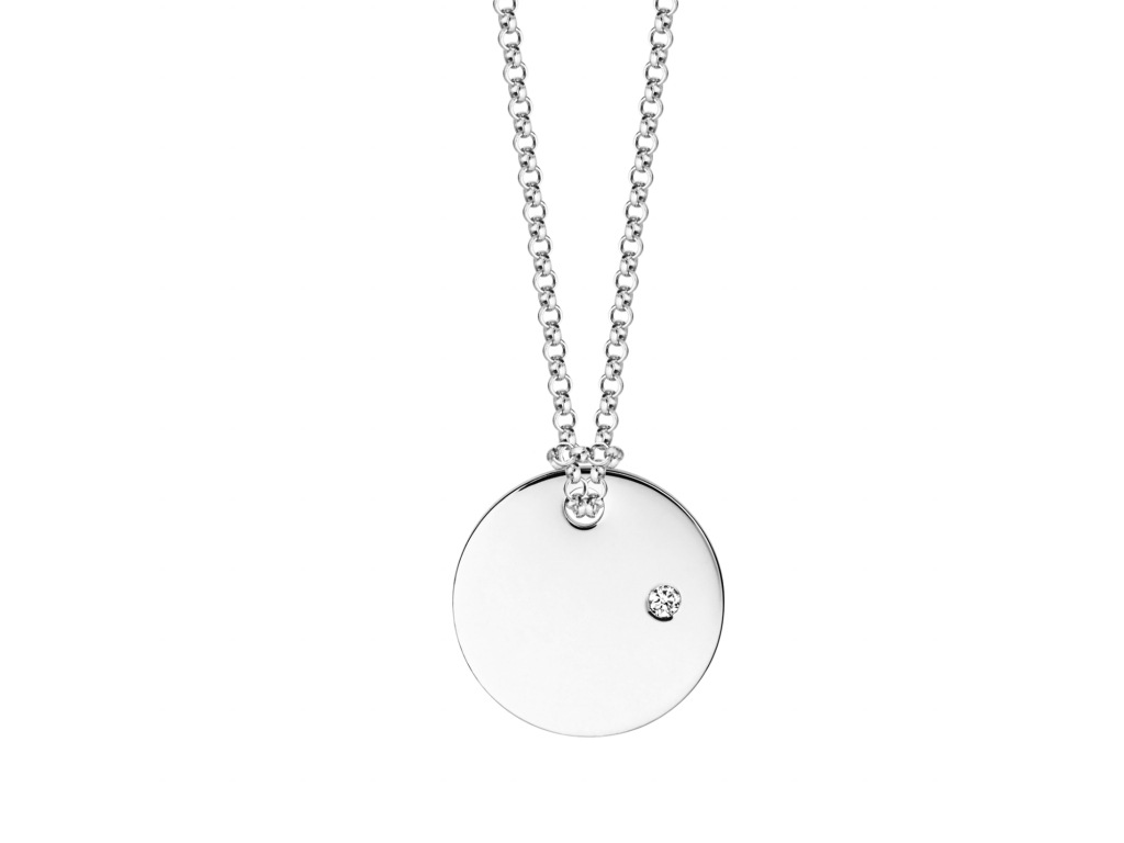 Krásny minimalistický medailón z bieleho zlata s certifikovaným diamantom. Tento nadčasový šperk môžete nosiť čistý alebo Vám naň vygravírujeme meno, dátum či iniciálky podľa Vášho želania. Medailónik je na jemnej, no kvalitnej a pevnej retiazke z bieleho zlata. Zlatú retiazku sme zakončili červeným koralom, ktorý podľa starej tradície nositeľa ochraňuje. Šperk ako stvorený na to, aby bol darom pre milovanú osobu.