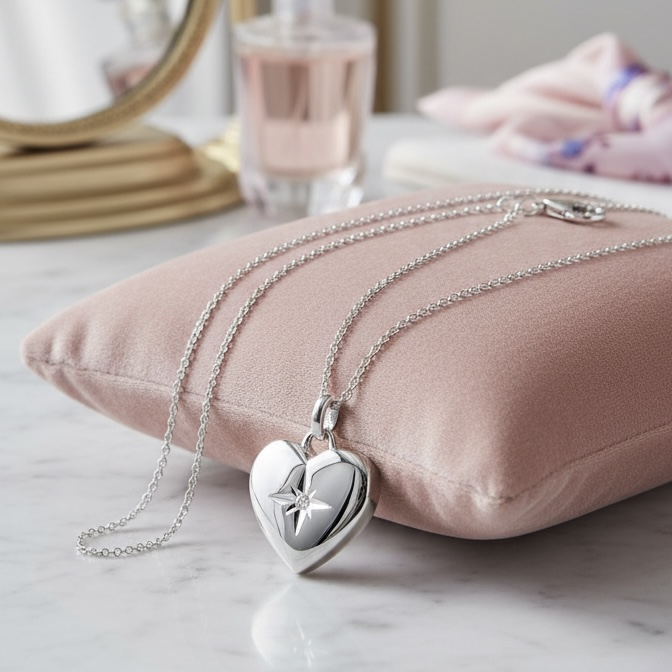 Tento elegantný prívesok v tvare srdca je zdobený precíznym reliéfom Bright Star – symbolom vnútornej žiary a nádeje. V samotnom strede hviezdy sa ukrýva diamant, ktorý zachytáva svetlo s výnimočnou čistotou. Každý odlesk pripomína, že to najkrajšie svetlo vychádza zvnútra. Z opačnej strany srdiečka je vygravírovaný nápis Bright Star.