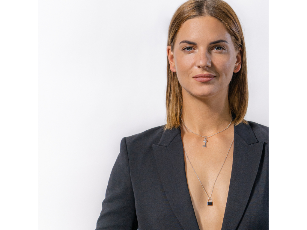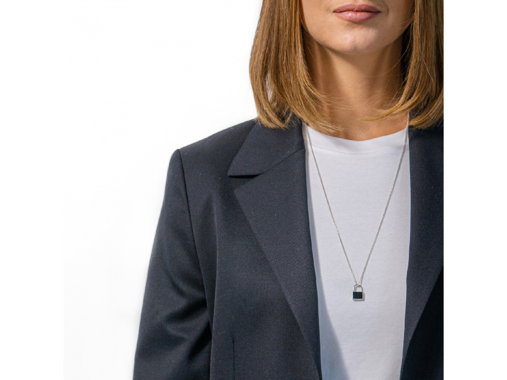 Zámok na retiazke v minimalistickom prevedení. Môžete ho samozrejme kombinovať s kľúčikom na retiazke no skvele a sebavedomo vyzerá aj sám za seba.