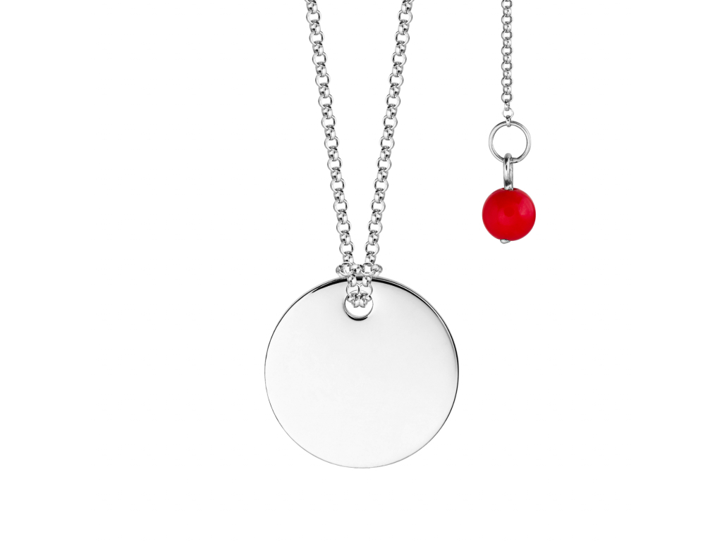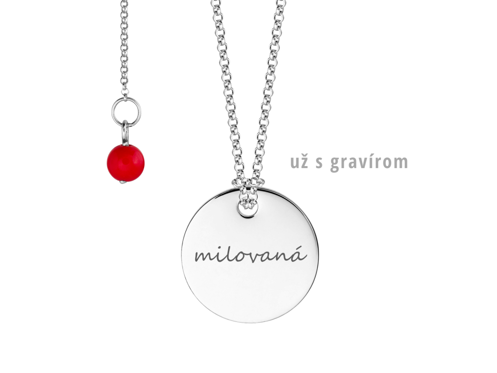 Zlatá platnička / medailón je na jemnej no kvalitnej a pevnej retiazke zo žltého, bieleho alebo ružového zlata. Retiazku zdobí červený koral, ktorý podľa dávnej tradície údajne chráni nositeľa/ku pred negatívnou energiou. Je to niečo ako talizman a ak máte chuť, jednoducho si retiazku otočte koralom dopredu a máte nový šperk.