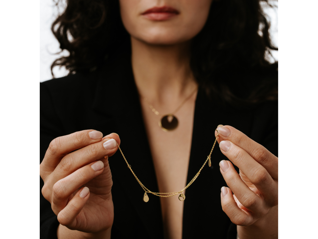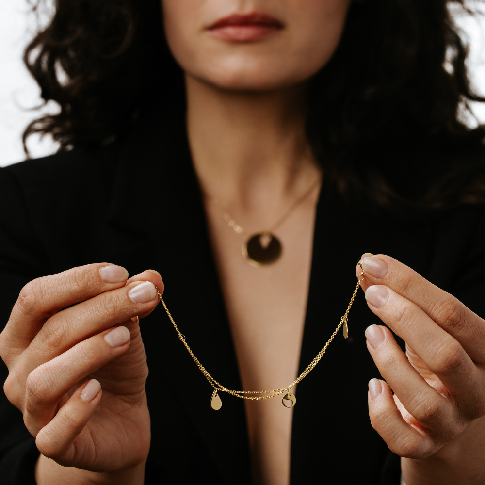 Dvojitá retiazka vytvára pocit vrstiev, tak ako má aj život svoje vrstvy: minulosť, prítomnosť, zrod nového. Náramok NAYA je pripomenutím, že najdôležitejšie sa deje ešte skôr, než to vidíme. V tichu, v jemnosti, v kvapke, ktorá mení smer. Kúsok pre každého, kto pozná ten okamih pred.